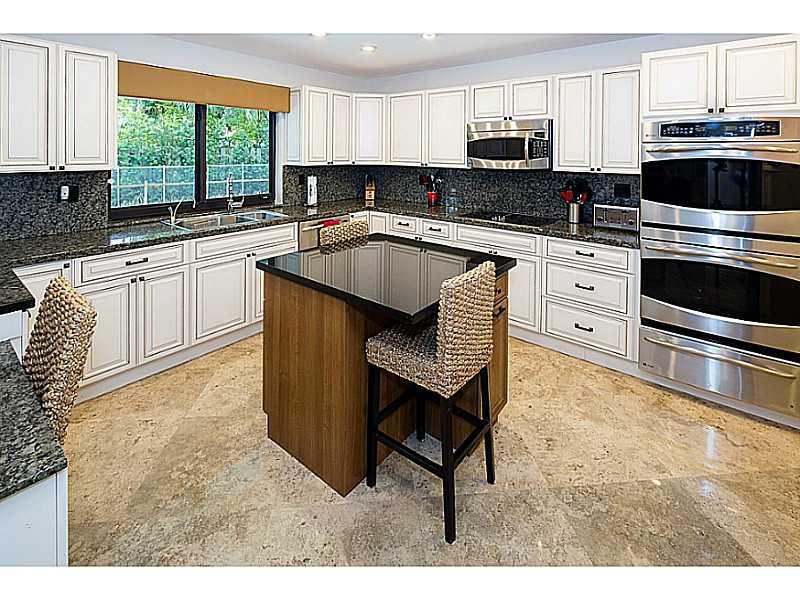 Stunning family home on majestically landscaped lot. Fabulous home features a gorgeous center courtyard, luxurious master suite, and an all new kitchen with ss appliances. Marble in all living areas, wood in all bedrooms. Windows in bedrooms and front of house are all impact and shutters on the rest. Imported lighting and plumbing fixtures , new A/Cs and water heaters and new A/C ducts. Tropical pool, indoor/outdoor bar, and air-conditioned storage unit. Chandelier in dining room and foyer excluded.