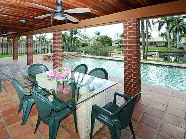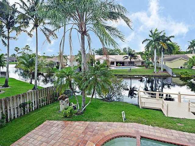 "JACARANDA CAY"ENJOY THIS SPECIAL 5 BED WATERFRONT HOME WITH POOL/LARGE WATERFALL,2 CAR GARAGE,OVERSIZED COVERED REAR PATIO.YOU WILL BE PLEASED WHEN YOU ENTER THE DOUBLE DOOR INTO THE FOYER WITH VIEW OF A LARGE WINDING STAIRCASE AND LARGE LIVING ROOM WITH VOLUNE CEILING FACING POOL.UPDATED KITCHEN WITH GRANITE AND WOOD CABINETS,ISLAND AND SNACK BAR,BREAKFAST AREA,FLORIDA ROOM,FORMAL DINING ROOM.MASTER SUITE ON SECOND FLOOR(18X25),AJOINING FULL OFFICE WITH KIT,FIREPLACE,1.5 BATHS,WALK-IN CLOS.3 A/C UNITS.