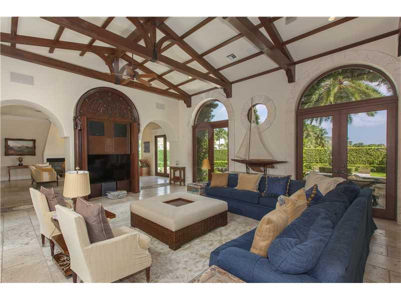 Spectacular ivy covered waterfront residence on prestigious guard-gated Sunset Island III, 156 ft of waterfront w/the most beautiful wide lake views & new large dock. Home offers spacious living room w/fireplace connecting to bright & light family room su rrounded by keystone lined walls & frames around arched windows & wood trestle ceiling, state-of-the-art kitchen w/granite-topped cooking island & breakfast area, sumptuous master suite w/3 walk-in closets, 2-sty guest house and heated pool. Very private.