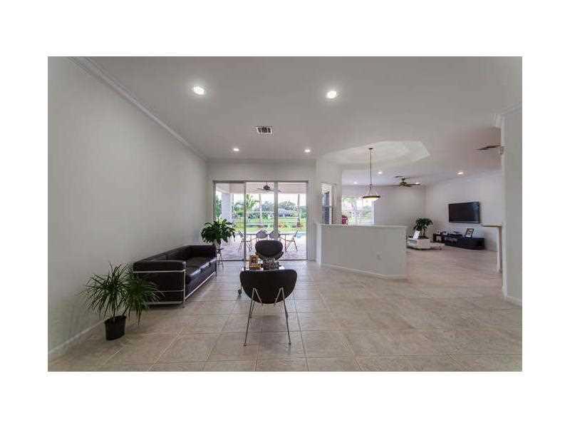Serious Sellers Upgraded Cambridge model 4/3 with third car garage converted to maids quarters with full bath. Executive home over 2,900 sqft of living area on a builders acre with large pool over looking the pristine lake on the private large yard .Beau tifully kitchen with top of the line appliances, Hardwood cabinets. Home is in impeccable condition! Gated community with 24hr security, A rated schools easy access to Dade and Ft Lauderdale.