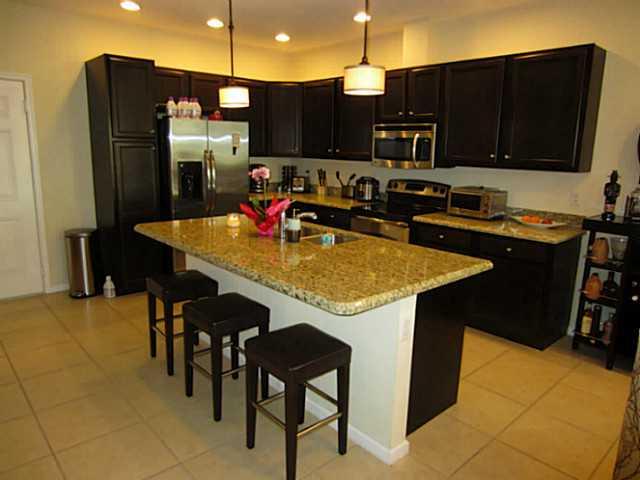 Beautiful two-story town home, the most popular Escala model totally upgraded and hardly lived in. Gorgeous dark wood cabinets in kitchen, stainless appliances gently used, granite tops and a cooking island. Covered patio in the front of house looking out into a large yard. Master suite also has access through French doors to a covered balcony. Large walk-in closet in the master and dual sinks in the master bath. Extra parking in the back of the house behind garage. This is a must see!