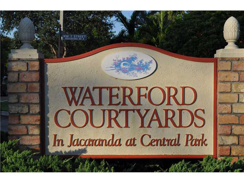 BEAUTIFULLY MAINTAINED AND MOVE-IN READY 2 BEDROOM/ 2 BATHROOM TOWNHOME IN JACARANDA'S WATERFORD COURTYARDS. THIS CORNER UNIT HAS CARPET AND TILE THROUGHOUT. CENTRAL VACUUM! LARGE BEDROOMS WITH LARGE CLOSETS AND BALCONIES! MASTER BATHROOM WAS JUST RENOVA TED! ROOF REPLACED 9 YEARS AGO! WALK TO COMMUNITY POOL AND CENTRAL PARK! ALL AGES, PETS WELCOMED! CENTRALLY LOCATED TO ALL MAJOR HIGHWAYS AND SITUATED IN THE HEART OF PLANTATION!!