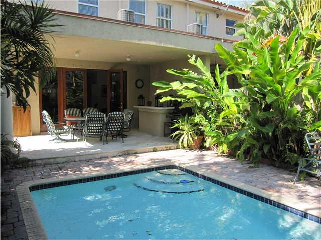 Luxury, well maintained home, located on a dead end street with limited access. Three bedrooms, two and a half baths. Travertine floors downstairs, less than three year old wood floors on the second floor. Master suite with sitting room. Master bathroom w ith separate tub, walk in shower and dual sinks. "Impact windows". Private pool. Covered private patio with wet bar. One car garage plus 2 car gated parking and plenty of street parking for guests. Upgraded kitchen appliances and washer/dryer.