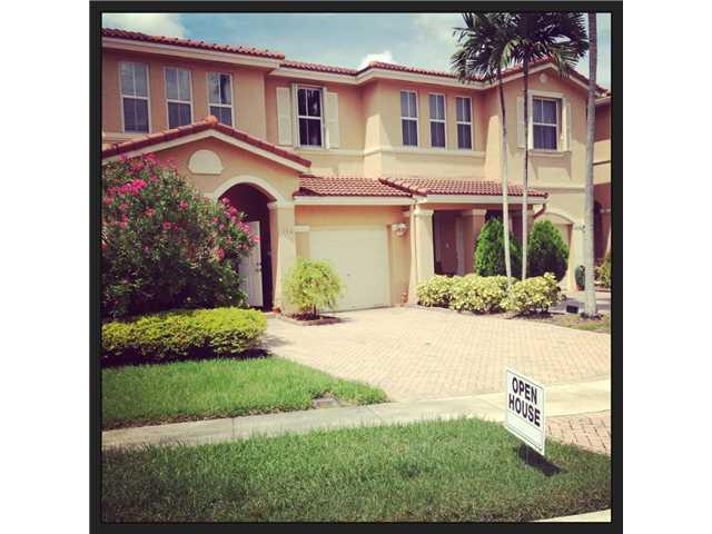 Beautiful and completely remodeled 2/2.5 corner unit Townhouse with one car garage. features laminate wood floors throughout all living areas and a screened backyard with a lake view. Accordion Shutters, jet powered hot tub in master bathroom, high ceilin gs in front living area, pre installed alarm system, and a driveway that can park up to 4 cars. Ready to move in!
