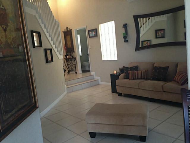 Spectacular West Miramar Waterfront Townhouse 3 bdrm / 2.5 bath plus Office/Den and 2 car garage. High Ceilings and open floor plan. Corner Gated Lot, with extra large driveway and large lake view. One of the largest lake view lots in this townhouse. Beau tiful large tile on first floor and wood laminate on stairs and second floor. Crown Moldings throughout the entire house. Washer/Dryer upstairs for easy laundry access. Family room is wired for home Theater / surround-sound. Hurricane Shutters included.