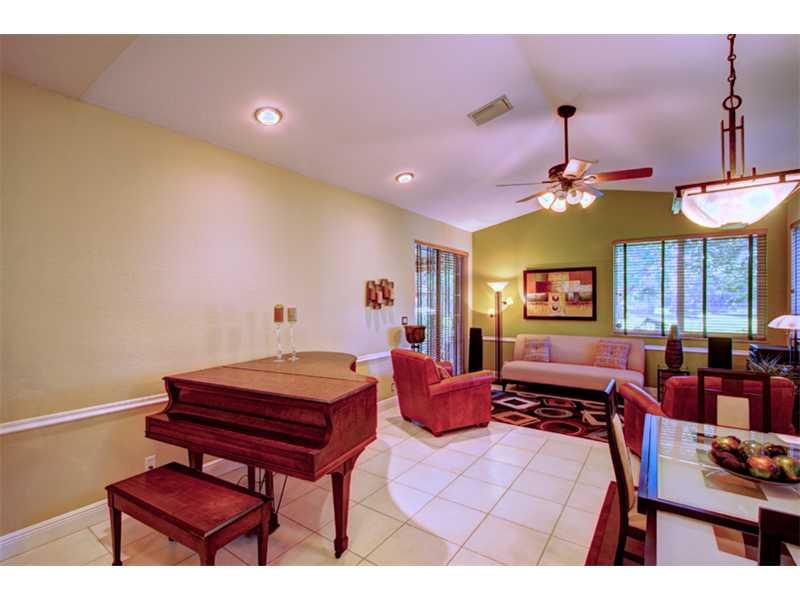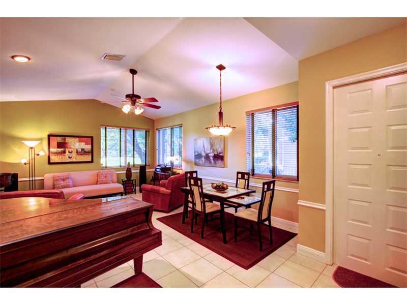 Absolutely immaculate and breathtaking single story corner unit townhome with excellent golf views. Open floor plan design with modern designer features such as knock down walls, wood floors, vaulted ceilings, and chair rails molding. Beautifully landsca ped yard and accordion shutters. Master Bedroom with Jacuzzi Tub and a shower. This home features are to wonderful to describe and its location is ideal with easy access to highway, airports, places of worship, entertainment and dining in Grand Palms.