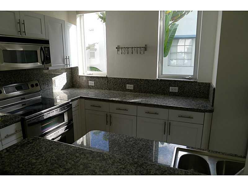 Beautiful corner townhouse with private attached 1 car garage and 1 carport. Two stories, spacious 2 bed/2 bath, gourmet kitchen (granite/stainless) with custom lighting. Living room with high ceilings and floor to ceiling windows. Plenty of light and Sky light over the stairs. Balcony off master suite, many closets, and a private patio (perfect for bbqs). Washer and dryer and storage in the garage. Steps from flamingo park and minutes from the beach and Lincoln rd. Easy to show.