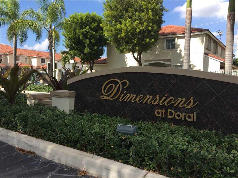 ABSOLUTELY IMMACULATE TWO STORY TOWNHOUSE WITH 4 BEDROOMS AND 2 1/2 BATHROOMS WITH SPACIOUS LIVING & DINING ROOM AREAS WITH ONE CAR GARAGE IN A VERY PRIVATE, PRESTIGIOUS AND SECURE GATED COMMUNITY IN DORAL AREA * DIMENSIONS AT DORAL. **CORNER LOT**WELL M AINTAINED**NO NEGIHBORS IN BACKYARDSEPARATE FORMAL DINING ROOM,UPGRADED LIGHTING FIXTURES THRU OUT,UPGRADED EAT-IN KITCHEN CABINETRY AND STAIN STELL APPLIANCES, CERAMIC TILE ON FIRST FLOOR AN WOOD FLOORS UPSTAIRS.