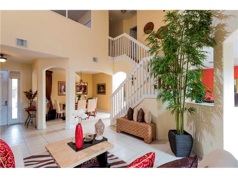 Stunning 4/2.5 Townhouse in Islands@Doral Netherlands. Den upstairs was legally built as 4th full bedroom by developer. Tile & wood floors. Superb kitchen; granite counters & backsplash, center island wine cooler, SS appliances, eat-in-counter. Family, Li ving, Dining rooms. Fenced backyard. Huge masterbed; space for sit-in/desk. Masterbath dual sinks, separate whirlpool & shower. Double garage, 1 converted into playroom, easily converted back to garage. Tons of community ammenities. Won't last. CALL NOW.