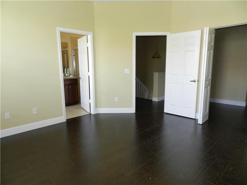 BACK ON THE MARKET WITH BRAND NEW WOOD FLOORS! 2013 TWO Story townhome at GATED Community of MONTCLAIR at Miramar! 2 Master Bedrooms w/their own bath & walk-in closet. Granite counters, tall wood cabinets, glass shower door, stainless steel appliances, de signer paint & lighting, impact windows/doors. A large green area as front yard, a Laundry Room in second floor and a 2 CAR GARAGE complete the package! Maintenance of 195 covers cable & alarm service. Enjoy the clubhouse, gym & bike-jog path along lake!