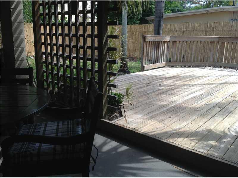 Adorable 2 bed/1 bath home w/covered carport. Large open living room with lots of windows. Formal dining room w/french doors. Kitchen w/ pantry & breakfast bar opens to dining room. Good sized bedrooms. Front porch. Spacious fenced backyard w/wood deck & room for a pool. Terazzo floors throughout. Gas stove & water heater. Laundry room. Driveway in back alley. Located in prestigious Hollywood Lakes area. Walking distance to downtown restaurants and Young Circle. Minutes from the beach.