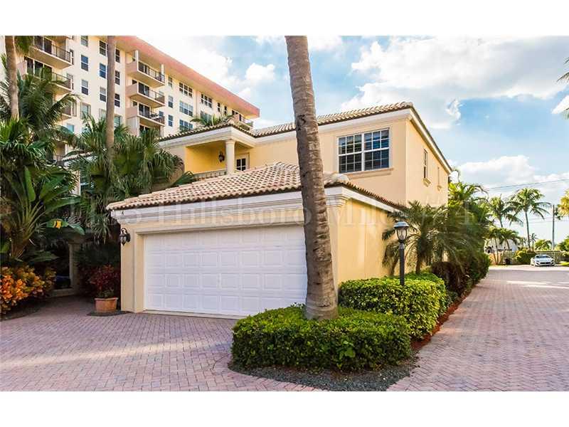 BEAUTIFUL SEASIDE TOWNHOME WITH DIRECT BEACH ACCESS ON PRIVATE, SECLUDED HILLSBORO MILE. GRAND, SPACIOUS GREAT ROOM WITH 10' CEILINGS, BREAKFAST AREA, DINING AREA, OPEN KITCHEN, PRIVATE GARDEN WITH HOT TUB. SMALL, VERY PRIVATE COMMUNITY ON THE SPLENDID HI LLSBORO MILE BEACH WITH COMMUNITY POOL AND BOAT ACCESS. PARTIAL OCEAN VIEW FROM LARGE MASTER SUITE WITH WALK-IN CLOSET.