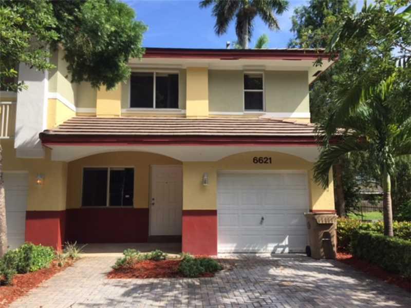 Corner Townhome in the most desirable community in Davie 'Hidden Hollow' This Large Townhome features 3bedrooms(all located upstairs),2.5bathrooms w/1car garage for great for covered parking or extra storage, beautiful screened porch, Granite Counter top, New Wood flooring installed throughout 2nd floor and tile on 1st floor, great open floor plan, high vaulted ceiling, great amenities: clubhouse w/Pool area! this is not a short sale not a REO, Only Unit for sale at this price with in miles, call today!