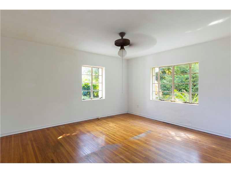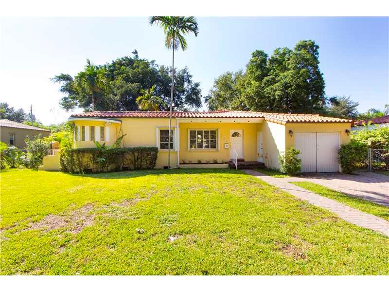 Truly a jewel to be polished, this charming home has wonderful space distribution & lush yard full of potential. Hardwood floors, large windows, distinctive molding & built-in nooks/shelves, original French doors. Sun porch/family room w/ unique oval patt ern terrazzo floor. Eat-in kitchen w/semi-circular breakfast nook. 2 beds w/ cedar closets. Newer red brick walk & driveway. Large linen closet, accordion shutters & termite warranty. 2/1 + 1/1 garage conversion. Great price to make this home shine again!