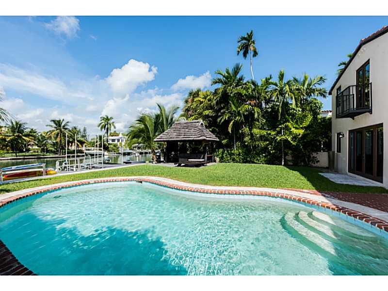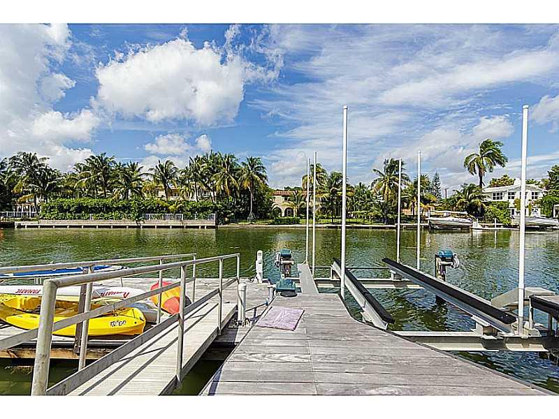 2 story Spanish Mediterranean-style gem with 7 bdrms/7.5 baths in a coveted waterfront location of Miami Beach. Notable features of this architecturally distinctive home include an elegant entrance with a walkway beside a lushly landscaped courtyard, gou rmet style kitchen with Thermador appliances & sleek quartz countertops, formal dining room, studio above a 2 car garage & a master suite with 2 balconies overlooking the canal. The backyard boasts a pool, entertainment area, floating dock & boat lift.