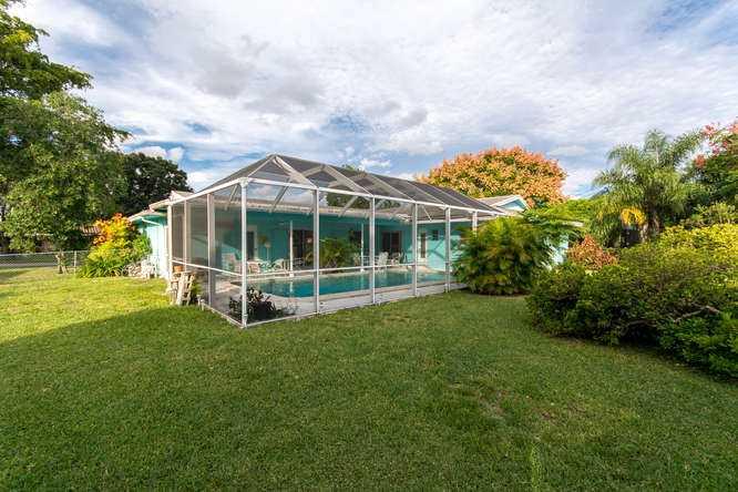 Classic 4bed/2bath home in sought after Secluded Gardens in Plantation. This charming home boasts beautiful curb appeal with circular driveway and well kept yard.Features sunken spacious formal living room with lots of windows.Formal dining room leads int o kitchen, which has room for a breakfast table.Large pass through window in kitchen opens up to covered screened in patio with large pool.All bedrooms are large and one of the bathrooms doubles up as a cabana bath.Floorplan offers great flow.