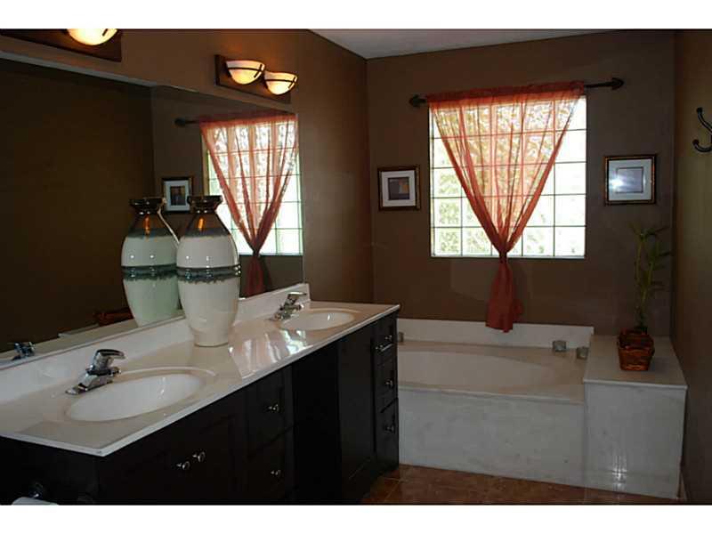 Beautiful 2 story house. Double door entry. Big living room with 20' ceilings. Fantastic all renovated kitchen with eating area facing ample family room. Full bath and one bath on the first floor. Second floor with laundry room, two very nice size bedroom s, a bathroom and beautiful master bedroom with walk-in closet and spacious bathroom with separated roman tube and shower. Accordion Shutters. Fenced back yard. Tile on first floor and wood on the second. Quiet cul-de-sac. House priced to sell won't last.
