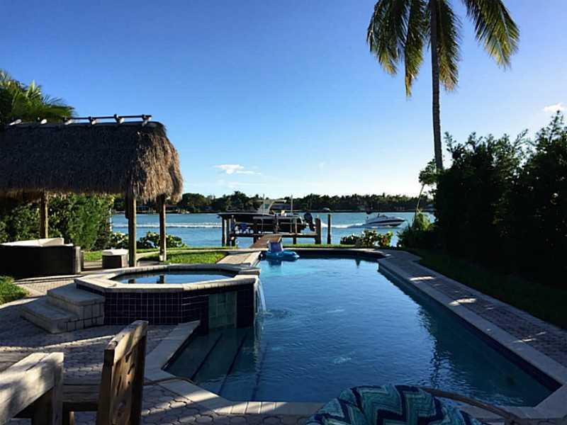 Beautifully renovated bay front property with breathtaking water view! Large heated pool w/ Jacuzzi and terrace overlooking the bay. Perfect landscaping with cozy Tikki Hut. Amazing for entertaining! Long deck with new boat lift 20,000 lbs and immediate access to the ocean. Ideal for boaters! Open kitchen with great living area. This house is located in the guard gated community of Stillwater. Very close to Indian Creek and Bal Harbour.