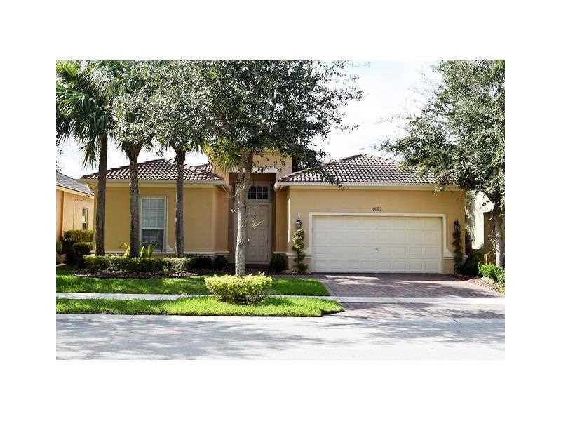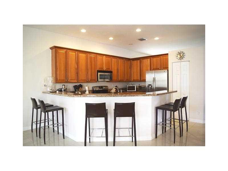 Stunning 4 bedroom/ 3bath in prime gated community "Isles at Weston".Home has been completely updated with Gourmet kitchen, granite counters, 42" wood cabinets, and stainless steel appliances. The floors throughout the entire living area are tiled with l arge, first quality Porcelanato tiles. Master bath features travertine tile floor, tub/shower combination and frameless glass door and a marble tile surround. Outside, there is a large tiled patio that is perfect for entertaining"A" Rated school district