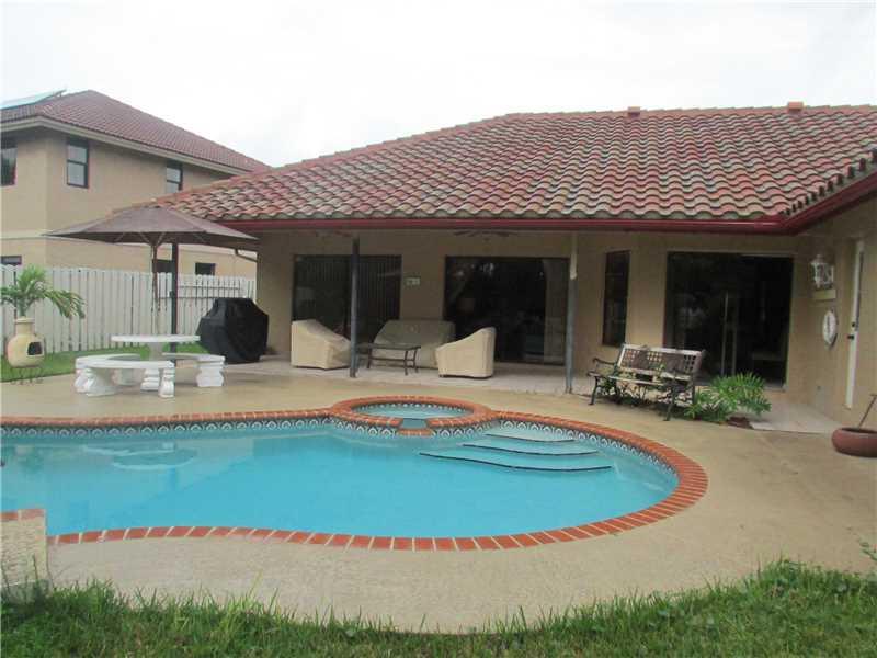 Splendid home located on a large culd e sac in a family oriented community with excellent schools. Brand new barrel roof installed worth 27k, freshly painted inside and outside, with new wood floors and new stainless steel appliances including washer/ dry er. Split floor plans with vaulted ceilings, Mater bedroom with views of the pool, his /her closets, soaking tub, double sink & separate shower. Fenced yard with patio ideal for entertaining, Lushly land escaped, hurricane shutters, A Rare find Must See!