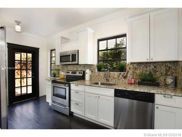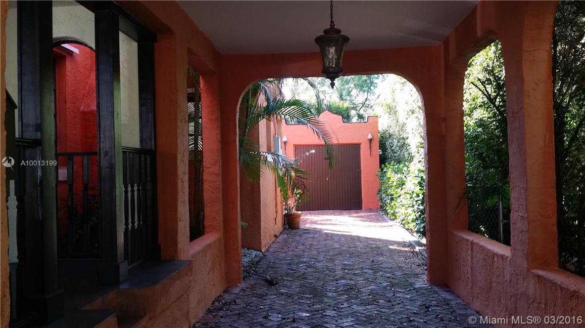 Adorable & Charming Old Spanish Home in North Gables. 2 /1 on 5,000 sq. ft lot. Built in 1924 & lovingly restored. The house features a beautiful covered entry porch with arched openings. Carport w/ pavers. Inside, living room with original wood burning fireplace, formal Dining Room, remodeled kitchen, stainless steel appliances, wood floors throughout & French doors leading to wood deck. House is handicap accessible w/ ramps on front & back. Bathroom w/ shower. Detached garage can be Bonus room.