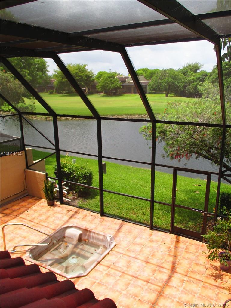 Costa del Sol 4/3 updated townhouse in central Doral surrounded by 220 acres of green space with Pool, tennis/ basketball courts, kids playground, restaurant, golf course, clubhouse. Open kitchen, ceramic floors and wood staircase, great views of lakes and golf course, high ceilings. Private courtyard in front and large screened back patio with a Jacuzzi. Maintenance includes insurance, roof, cable, water, trash, paint, security, landscaping. A+ Schools. Live in your own park. One of the largest unit.
