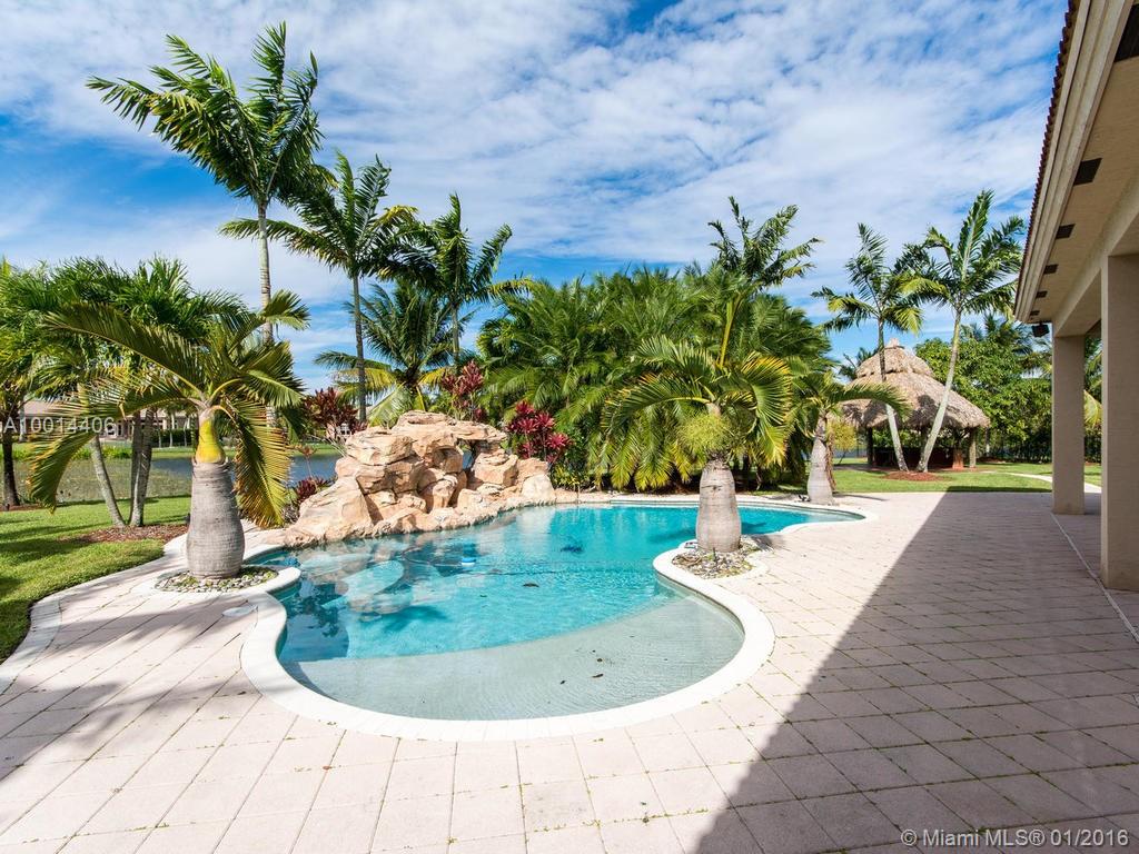 LUXURY WATERFRONT POOL HOME IN GUARD GATED COMMUNITY. YOUR PRIVATE OASIS IS LOCATED ON A QUIET CUL-DE-SAC ON ONE OF THE LARGEST LOTS IN THE AREA (1.3 ACRES WITH OVER 190 FT ON WATER) 4BR/+DEN. INTERIOR HAS MARBLE FLOORS IN THE LIVING AREAS, WET BAR, CROWN MOLDINGS. MASTER BR HAS WOOD FLOORS AND 2 CUSTOM CLOSETS. CERAMIC TILE IN OTHER BEDROOMS. HUGE PATIO, TIKI HUT W/BBQ OVERLOOK POOL W/CUSTOM WATERFALL, AND OVER 20 COCONUT PALM TREES, BACK UP GAS GENERATOR *seller motivated--bring all reasonable offers*