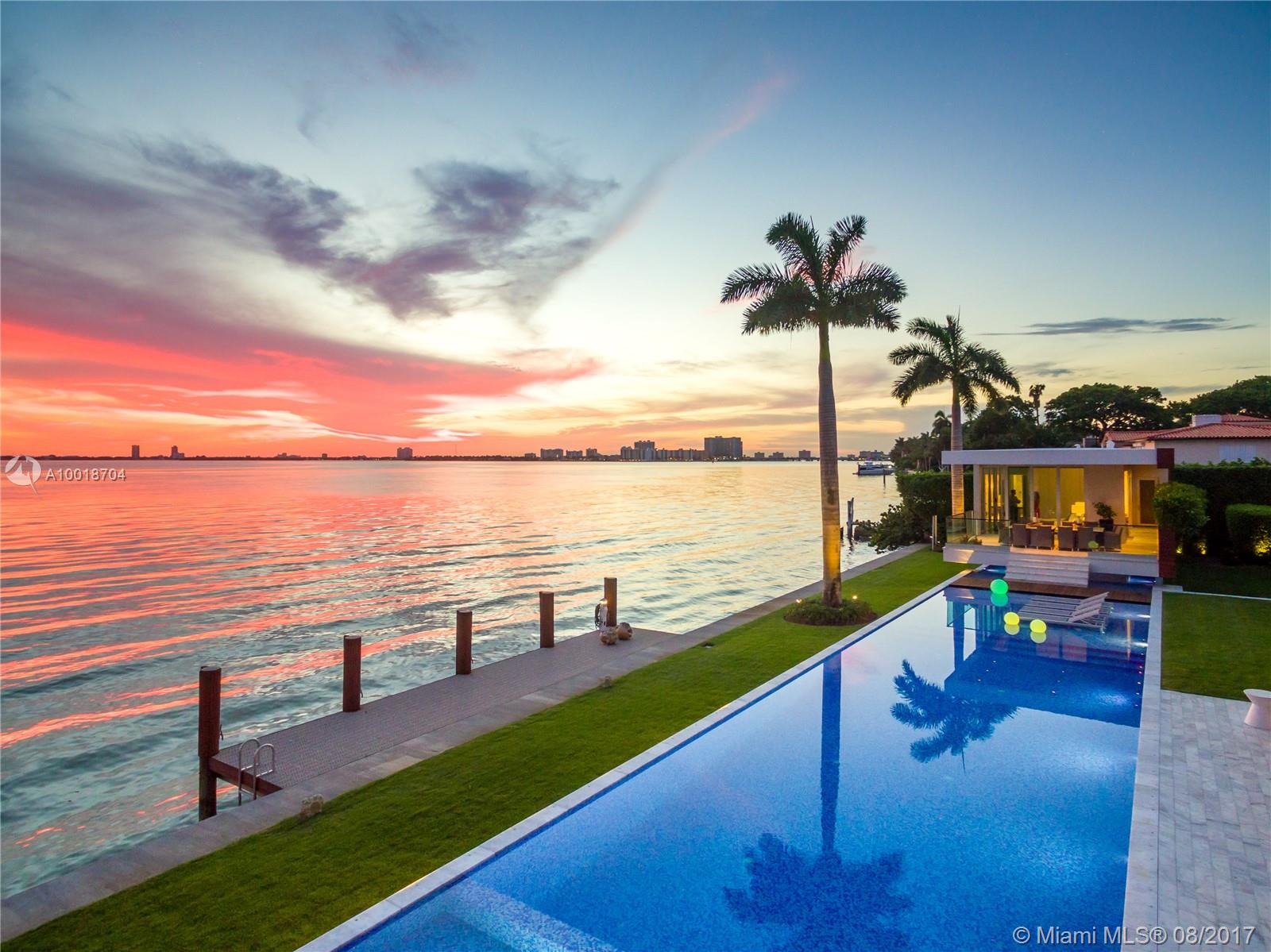 5446, is a true Jewel Box. Located on Prestigious N. Bay Road, lay an architectural masterpiece nothing short of Spectacular. This "smart home" includes a chefs kitchen, Otis elevator,floating curved staircase, rooftop terrace,gym,70" pool/spa, 3 koi ponds, and retractable doors that offer sweeping views of the Miami skyline. From Mega Developers Todd Michael Glaser and the Posner Group. Approved plans for large gym, theater, and 2 more staff rooms above garage adding 2,233 SF.