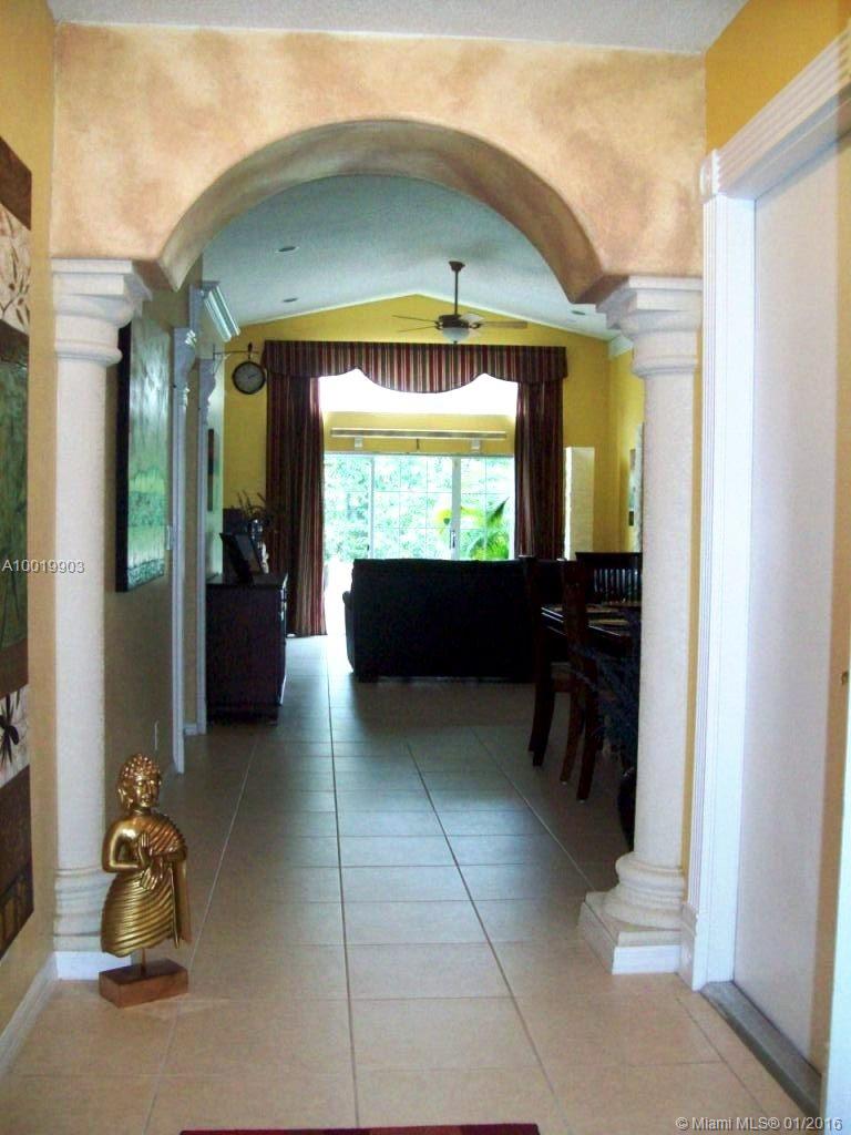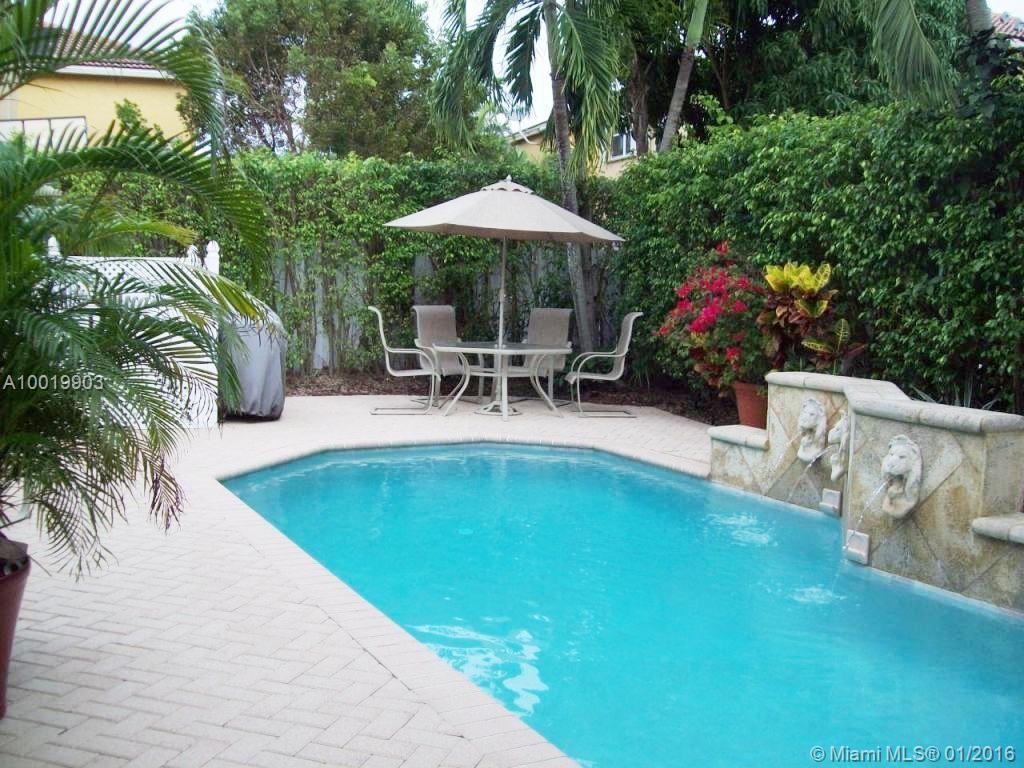 Stylish designer touches make the beauty of this home unique: arch & columns at entrance foyer, architectural trims around passageways, upgraded baseboards & crown moldings. Features include diamond finish heated pool (2014 pool heater & pump), outdoor shower, wood blinds, hi efficiency cost saving A/C (2012), SS kitchen appliances (fridge 2013). Granite kitchen. Bright airy home. Furniture is negotiable. Larger lot than most. Near Oakridge park entrance. Walk to houses of worship. Guard gated community.