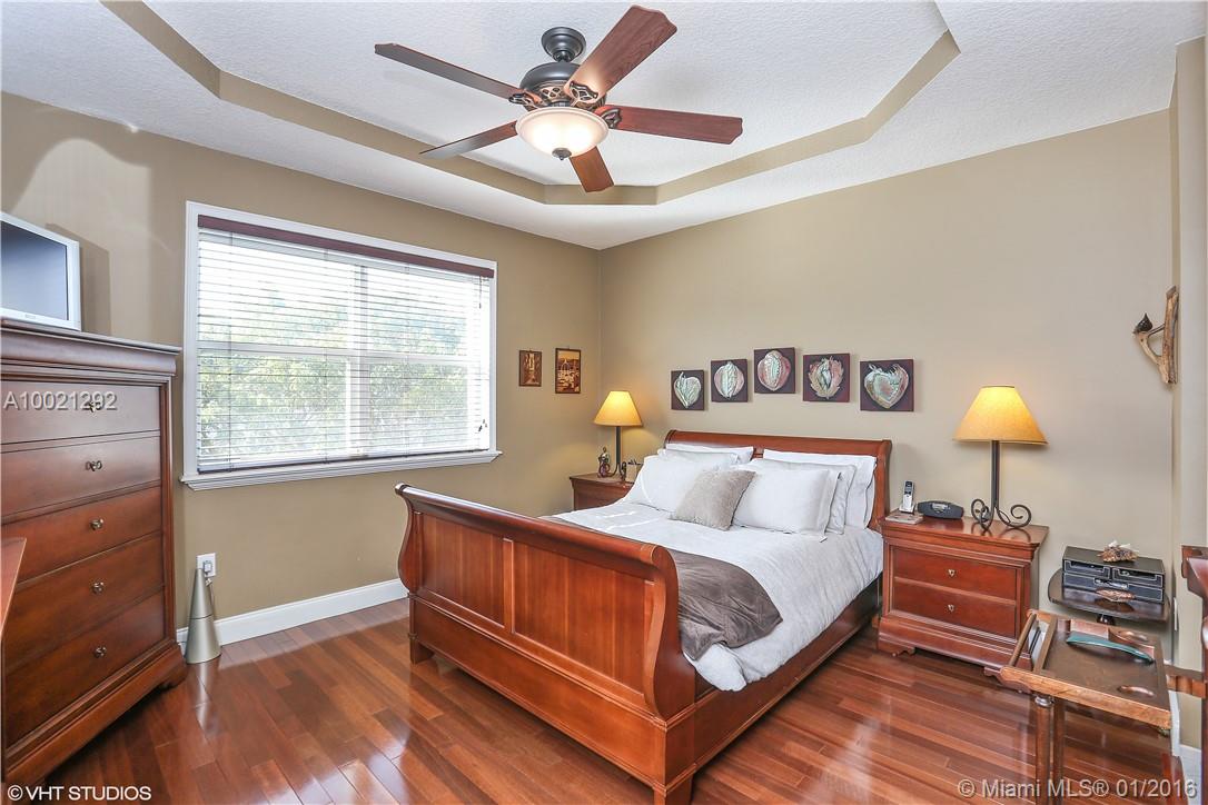 This 2-story TH is located in secure, Doral Chase, guard gated community in Doral Park. The treelined streets are impeccably cared for w/the low monthly maintenance fee. Corner unit w/pavers, garage & courtyard. Soaring ceilings & impeccable custom updated kitchen, new cabinets, appliances & corian countertops. Light & bright living dining area to fenced, large & private patio. Large den on 1st floor w/full updated bath. 2nd floor is Brazilian Cherry hardwood flooring in 4 bedrooms (one used as ofc).