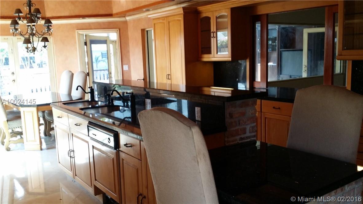 Boaters paradise in exclusive gated community. Large 2 story home with marble floors throughout the home, boast 6 bedrooms 61/2 baths, spacious eat-in kitchen overlooking the pool and waterfront, a family room on each floor, master bedroom with spa and much more. Lot has approx. 75 feet of waterfront and private dock with water and electrical power. Dock can accommodate large vessel. Previous owner kept a 81' Ferretti yacht docked at the property for several months. Ocean access via Haulover. .