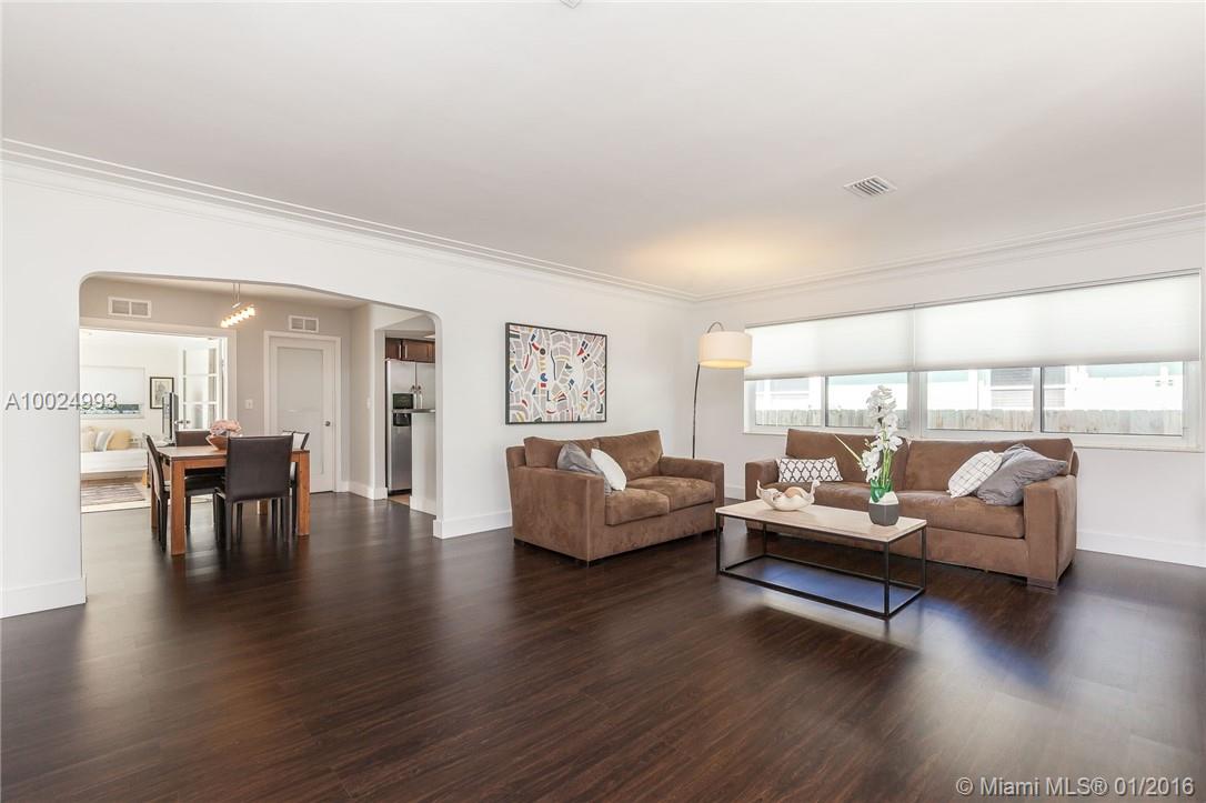 Completely remodeled 4 bedroom plus den/3 full bath Surfside home. Light and bright open floor plan with foyer entry, spacious dining and living areas, laundry room and fenced in back yard with patio and BBQ area. Kitchen features granite and wood cabinetry and two year old stainless steel appliances. Impact windows throughout. Circular driveway. Walk to beach, shopping and restaurants. A+ schools. Ownership includes use of the Surfside Community Center featuring pool, beach, childrens programs, tennis, +