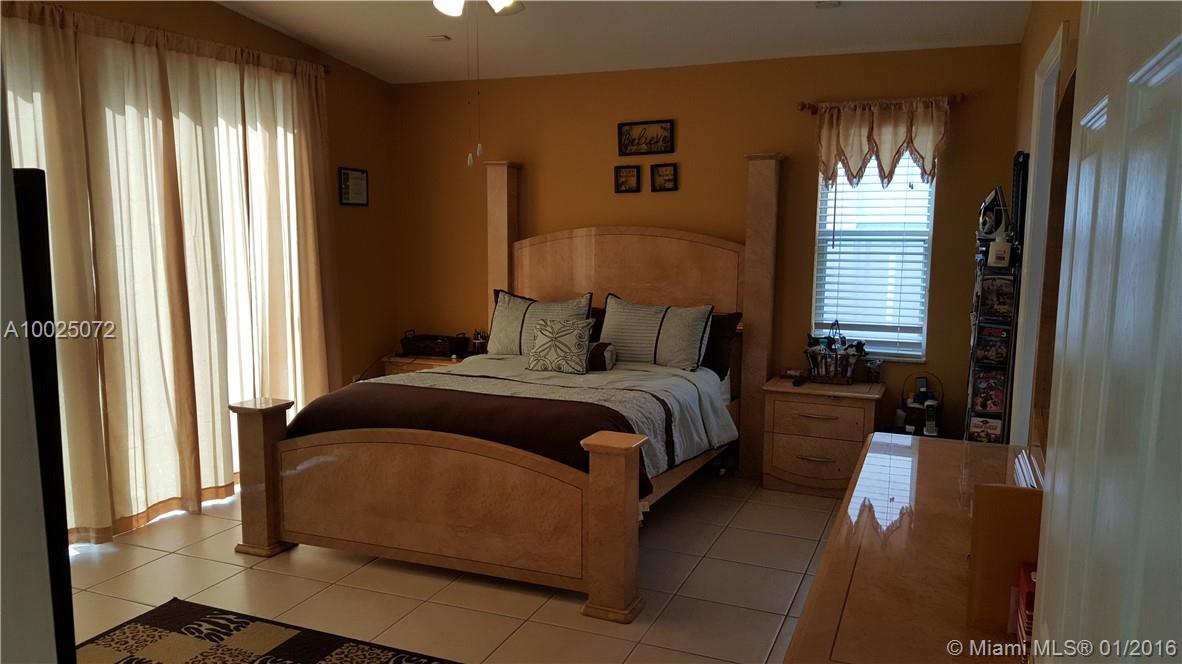 4 bedroom/2 bath home. A large 2 car garage with plenty of room for extra storage. It offers a foyer, huge living room and dining room combination. A great eat in kitchen that connects to the family room. Offers crown molding and high ceilings in main areas of home. The master bedroom has a separate shower,garden tub,double sink with a built in vanity area. The home offers a front loading washer and dryer. This home also offers built in hurricane shutters, hurricane resistant front and garage door.