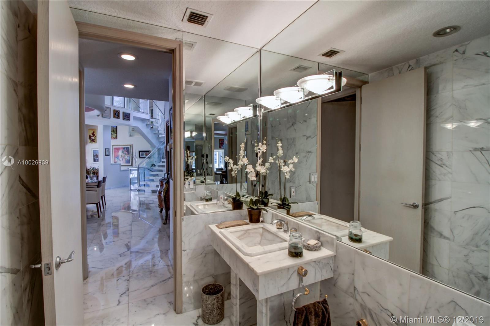 Wake up to spectacular Florida sunrise and enjoy beautiful sunsets in this oasis! Breathtaking water views! Light & bright 2 story gorgeous custom built pool home in gated community at prestigious Golden Beach w/150ft of water frontage including a protected slip for boat up to 35ft plus extra large dock space for a yacht & ocean access. House was constructed by current owner using only the finest materials, Italian Carrara marble throughout, vaulted ceilings, open modern kitchen, safe impact windows or accordion or rolladen shutters, wine storage room, office on 1st floor overlooking water. Relax on private roof top sunbathing deck. Spacious 2 car garage. Close to beautiful Aventura and Sunny Isles Beach!