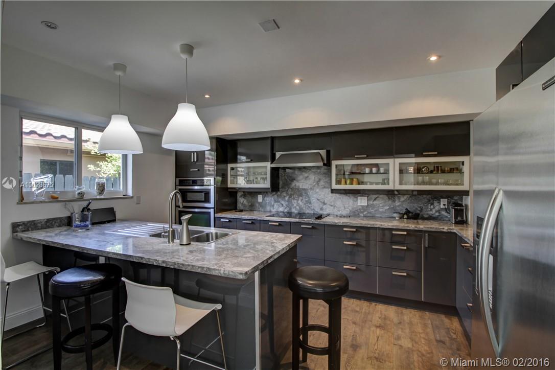 Great opportunity to own renovated Keystone Point waterfront pool home. 5BR/4Bth plus office. Wood and Tile floors thru-out. Kitchen with designer cabinets and granite counter tops. Spacious open living & dining area. All bathrooms renovated with designer cabinets. Master over looking pool with sliding doors to patio. Beautiful backyard for entertaining with deck and Pergola. Boat dock with ocean access and no fixed bridges to Haulover Inlet. 75FT on waterfront. 24/7 Guard-Gated Community.