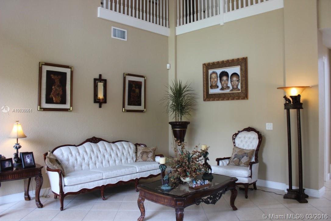 Grandiose Estate in this exclusive & private community, tucked away in a quiet little corner of the beautiful city of West Miramar. Home features large kitchen w/ dark wood cabinets, cook top, double ovens & S/S appliances. Tile throughout LA, cozy carpeting in bedrooms. Enjoy the convenience of a one story w/ Master BR on ground floor, & the private dramatic style of a two story home, w/ large bedrooms upstairs. Large loft upstairs can be used as 2nd family room. Hurricane shutters, w/ accordions on top.
