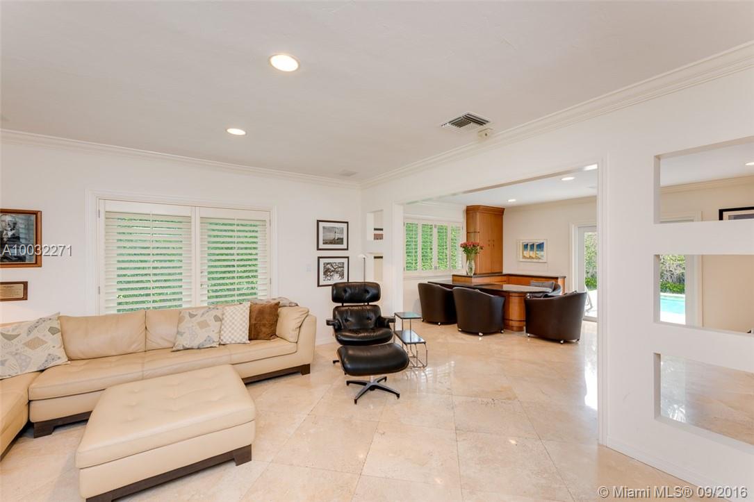 Manicured grounds & red brick driveway welcome you to this classic corner lot estate on coveted Sunset Island II. Natural light & a contemporary aesthetic highlight this 5bed/6bath flow-through home featuring gourmet kitchen w/Monogram appliances & glass cabinets, formal dining & den w/builtin bar & direct access to pool/backyard through French doors. Spacious master w/spa-like bath boasting soaking tub & vanity. Wall of hedges for privacy, coral limestone deck & large pool make this home complete