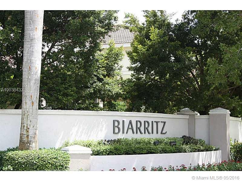 Gorgeous lake views! 3 bedrooms, 2.5 bathrooms in prestigious "Biarritz" Community! Immaculate condition, ceramic tile floors on the first floor & wood floors on the 2nd floor, beautiful kitchen, washer & dryer, custom closets, lots of storage, large patio with pavers. Guards & Gated community. Basic cable and waste service included in the HOA payments. Great Schools & Location! Move-In Ready!!