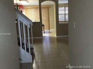 Beautiful home in excellent conditions! Features include water views with fountain, a/c duct inside garage, tile flooring with wood floors upstairs. Attached generator with new a/c unit, extended patio terrace and new kitchen appliances!! New painting including crown molding and master suite with a custom walk in closet, shower bath combo with roman tub. Two community pools and a kids playground. Association fee includes roof cleaning, exterior paint, pool, gated entry, playground and lawn care.