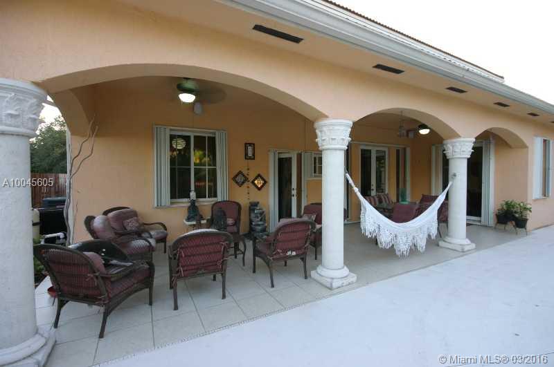 2Story 5/3 circular driveway home, granite kitchen countertop, SS appliances, crown moldings & tiles throughout, fireplace, huge master, his & her walk-in closets, surround sound system, 1 bdrm w/open balcony, 1 bdrm on 1st flr w/full cabana bath, laundry rm & oversized lot w/room for boat or RV on side, 2 car garage, heated pool, Jacuzzi, outdoor gazebo w/kitchen & bar, shed, sprinkler system, concrete landscape moldings, surveillance ready & accordion shutters. Eden Roc furniture included. Miami Springs