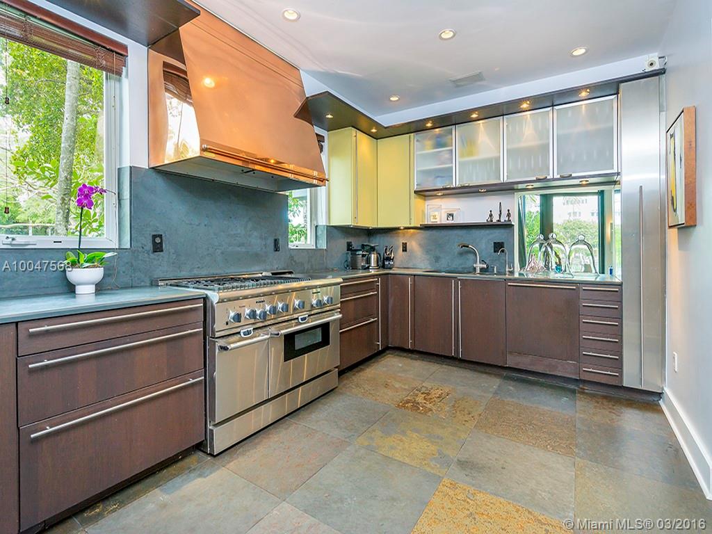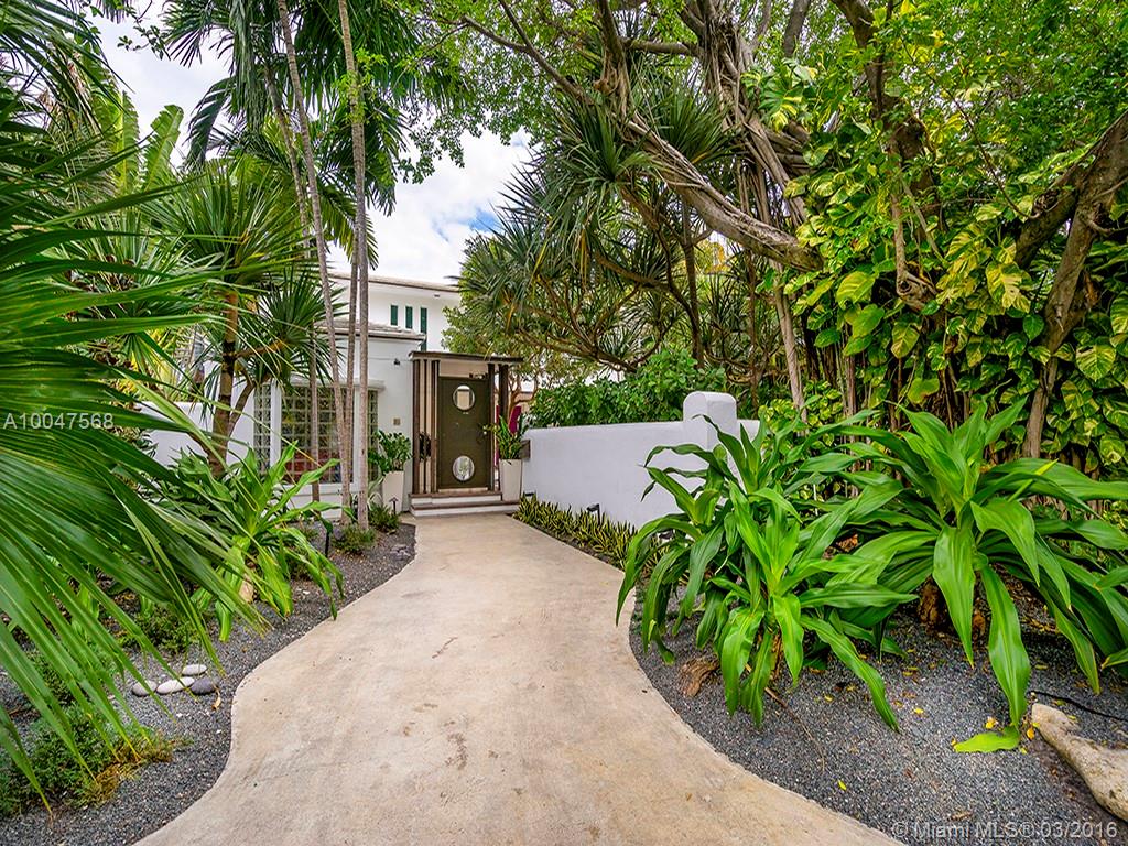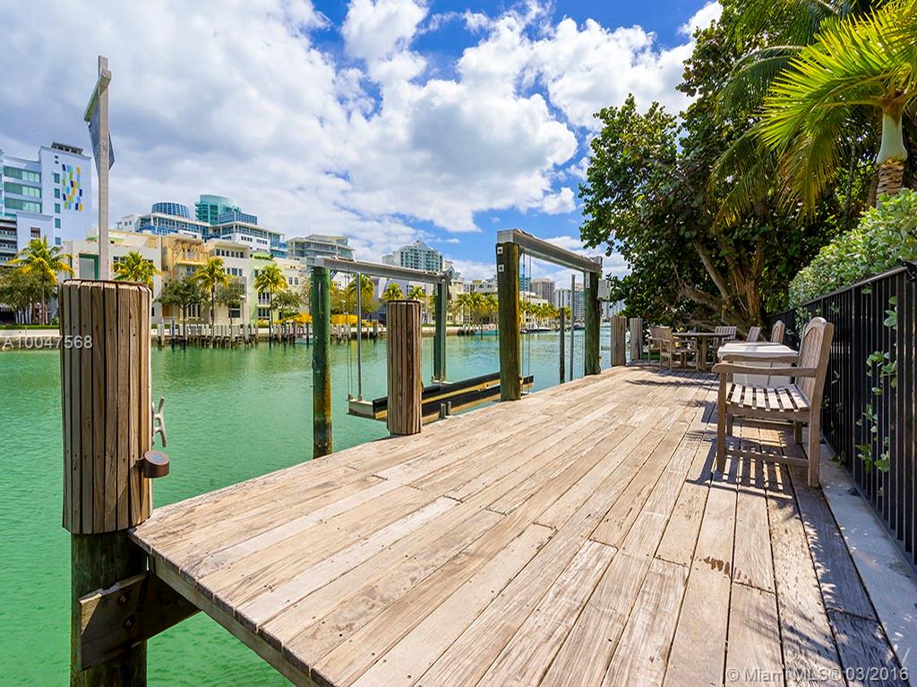 LEAST EXPENSIVE WATERFRONT HOUSE on prestigious Pinetree Dr. Super cool, renovated, 2-story, 3 bd/3.5 bth residence. Gated estate with courtyard parking for 4 cars. Beautiful terrazzo and hardwood floors. Modern kitchen with high-end SS appliances. Formal dining room. Living room with fireplace. Family room overlooking pool & bay. Master suite with sitting area and balcony overlooking the water. Marble master bath with rain shower & spa tub. Private backyard with 75 feet on the water w/ dock & boatlift.
