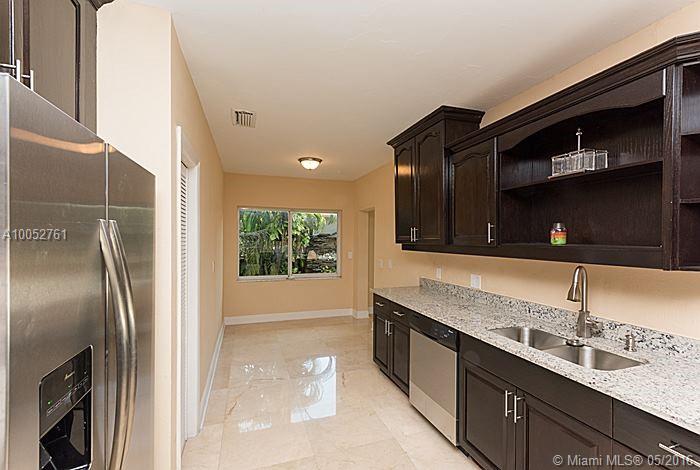 Great value ! Beautiful, large and updated home in family-centric Miami Shores, walking distance to golf course; Aquatic, Community & Athletic center with rec classes, soccer & tennis. Gleaming marble floors with wood floors in bedrooms, large bathrooms and a spacious kitchen with Espresso Shaker cabinets, granite counters and SS appliances,2 car garage & 2 driveways. The home is fully walled with wonderful pool and patio area overlooked by the Mission style arched gate reminiscent of the Alamo !