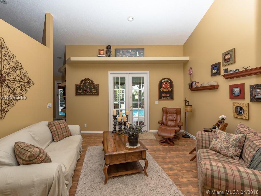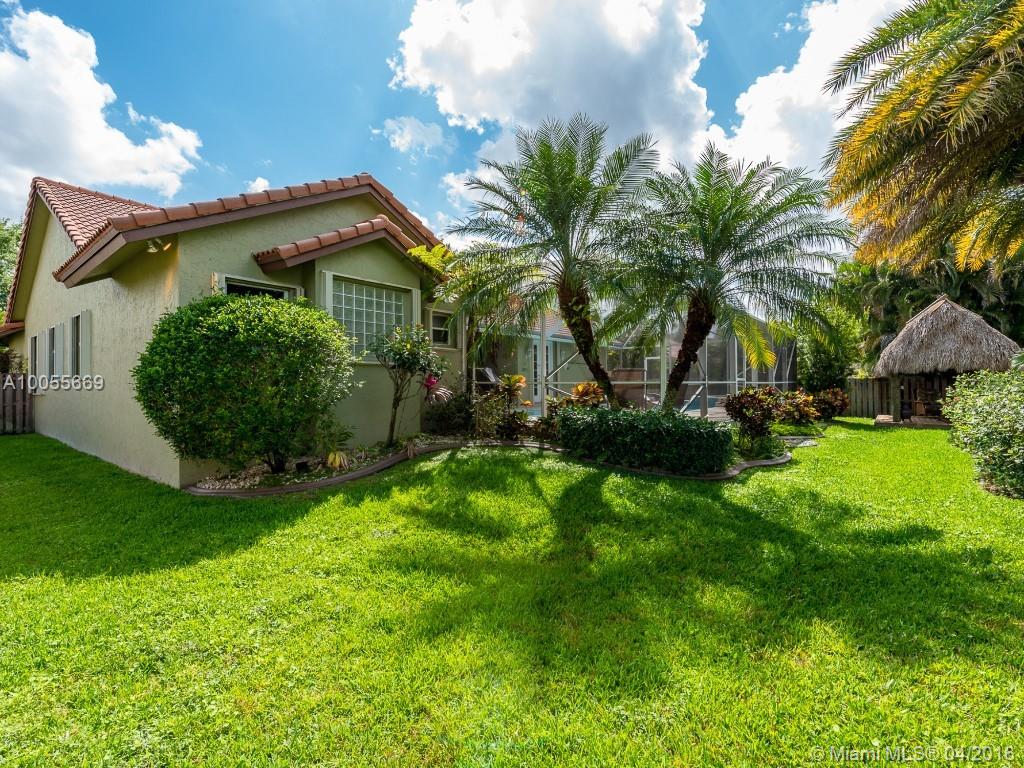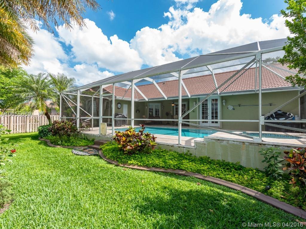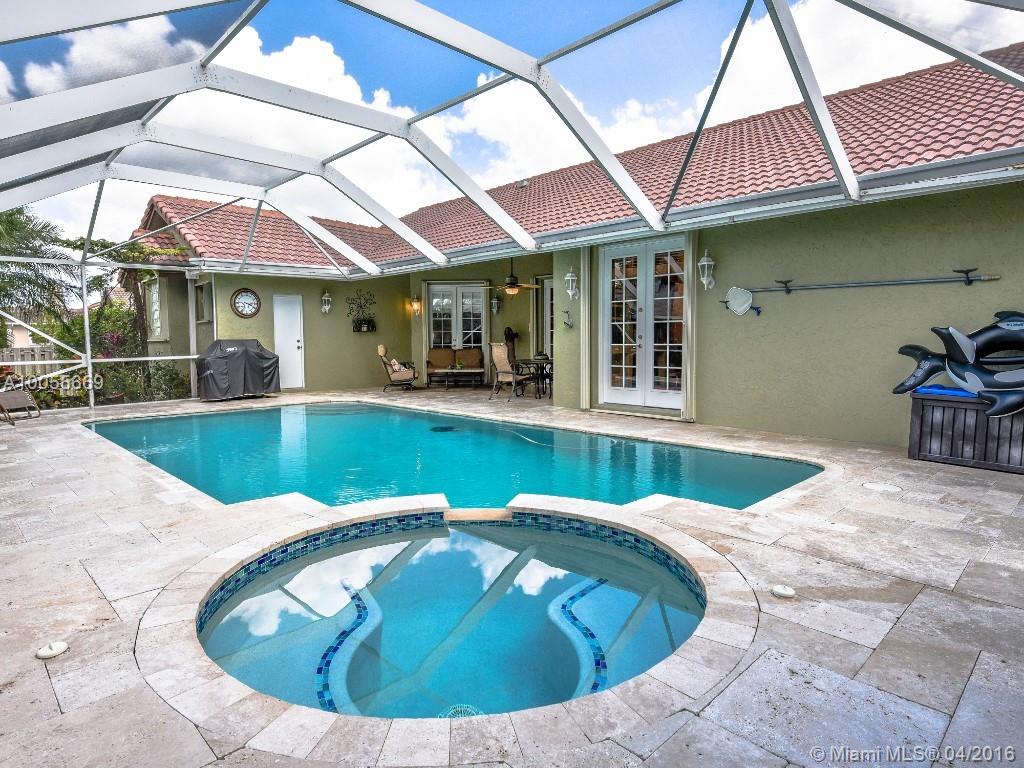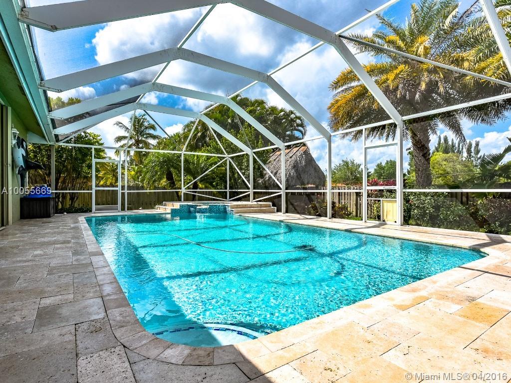 Beautifully upgraded 4 bed plus office/den, 3 full baths. Custom gourmet kitchen w/wood cabinets, granite counter-tops, & SS appliances w/double oven. Open floor-plan, vaulted ceilings & wood floors. Large master w/sitting area his and her walk-in closets. Fenced in tropical paradise backyard complete w/lush landscaping, tiki hut, enclosed screened-in newly re-surfaced deck & pool/spa converted to salt system. Accordion shutters, new ac, newer barrel roof. NO HOA! Freshly painted...Perfect Family Home!