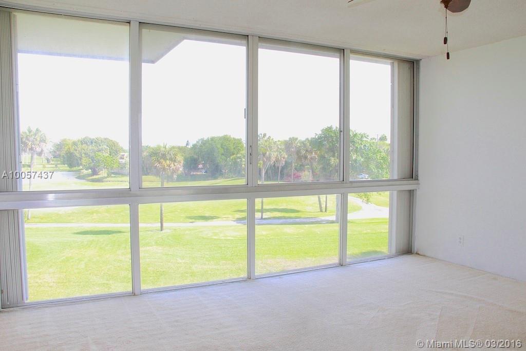 Stunning town home with unending views of the Country Club of Miami Golf Course and Lakes. Living Room boasts extremely large windows overlooking the course with 18 ft. floor to ceiling windows. Elevated Formal Dining Room with galley kitchen. Both bedrooms are very spacious. Master Bedroom has panoramic views of golf course. Home has tons of natural light. This home has an abundance of potential.