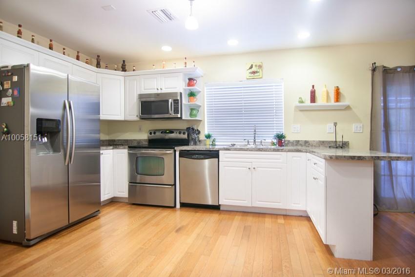 Beautiful 4/2 home is conveniently located close to all the amenities you would need. Very efficiently laid out with family, living & dining room as well as pool, w/ fenced-in yard on a corner. The property garage is converted to a fifth bedroom w/3 bathroom. The home has been well maintained, from the beautiful landscaping to the spacious and generous interior living areas & bedrooms. There are wood floor throughout and open kitchen with an eat in area. Stainless steel appliances. This home will not last