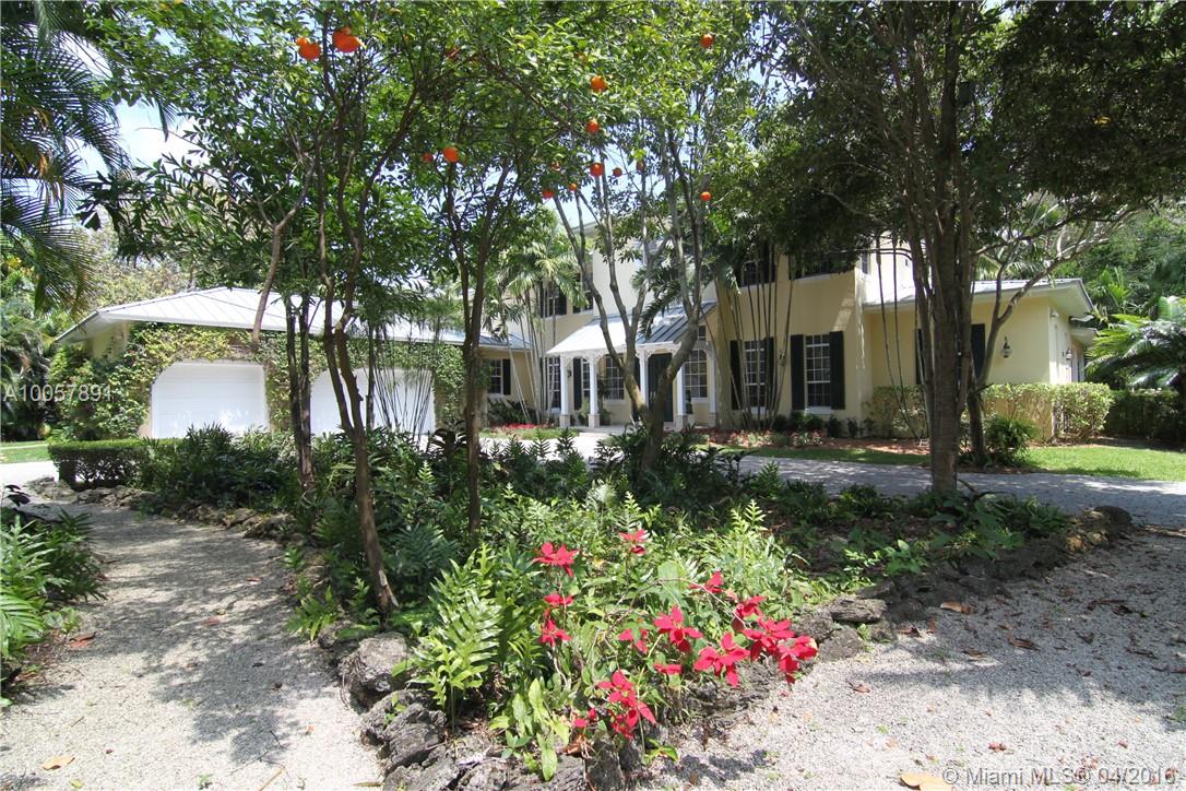 Spectacular Key West style estate on 1.4 acre mini Fairchild garden compound! "2004" custom built w/ meticulous high-end finishes, quality and great floor plan. Attention to detail throughout. Imposing foyer entry. Volume ceilings. Metal roof, marble & wood flooring. Gourmet kitchen. Elegant and gracious living, dining rooms. Fireplace, high-impact glass windows and doors. Backyard paradise w/ wrapped around veranda. Stunning freeform heat pool and spa! Elevator, summer kitchen. Separate full guest house!