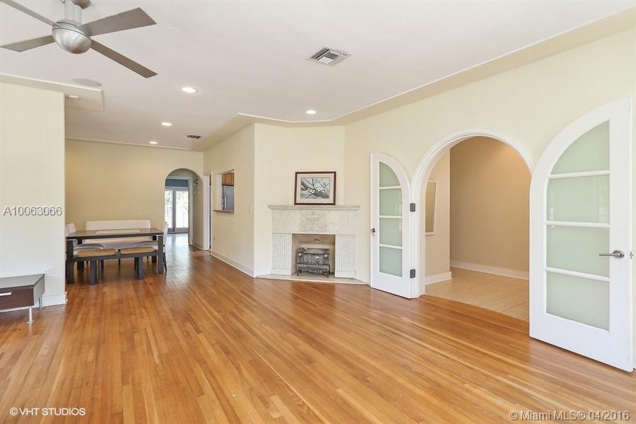 Charming 3 bedroom, 2 bath converted to a 2/2 in desirable Lakeview area on Miami Beach. This cozy Deco home offers crown moldings, a fireplace, Dade pine hardwood floors, open floor plan with living and dining room including an outdoor dining garden porch, perfect for entertaining. The enlarged master suite has with walk-in closets. The private and tropical back yard is fenced and spacious with a stamped concrete patio ideal for BBQ's and entertaining. There is room for a future pool.