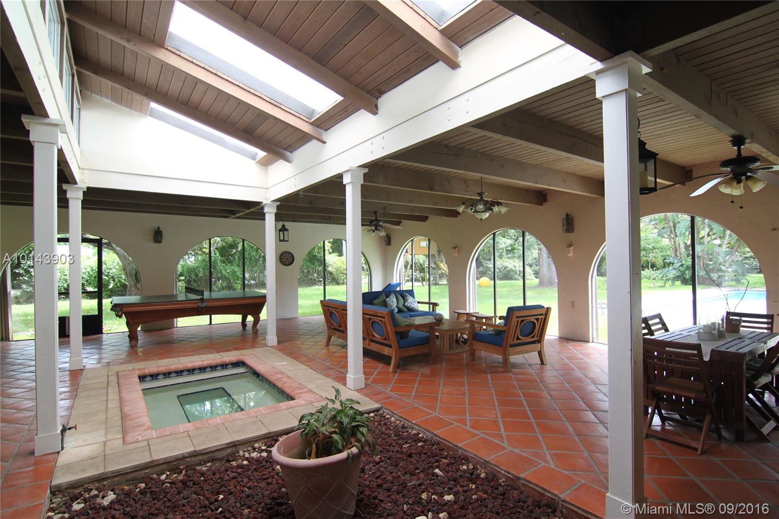 Great opportunity! Prime location on most desirable North Pinecrest street! Lush wide and deep oak laden acre (300 ft deep) Gorgeous, serene park-like setting with inviting open pool! Partially updated of over 4000 sf. New impact glass windows & doors! Split plan. Large master with vaulted ceiling & luxurious bath. Addl. den/office w/bath. Guest quarter. Large patio w/ skylights & bar! Property is being sold for nearly lot value (48,787 sf). Architect's renovation & expansion plans available. A must see!