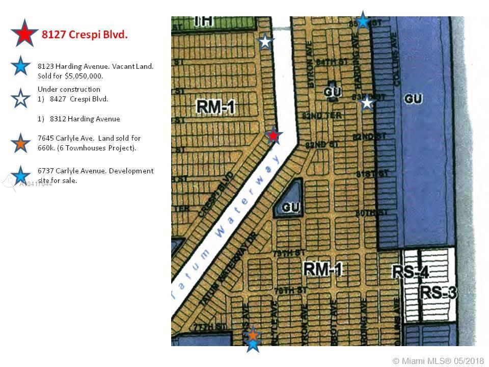 ATTENTION DEVELOPERS: LAST WATERFRONT VACANT LAND IN NORTH BEACH! Be part of the revitalization of this beautiful neighborhood. Zoned for Multifamily, Townhouses and Single Family Residences (RM-1). New owner's choice! . Unique piece of land in Crespi Blvd. with 62' of waterfront area. Located between Surfside and Mid Beach, easy acces and exit through 71 Street. Minutes away from South Beach, the Convention Center, Lincoln Road, Mount Sinai. Close to everything: parks, beaches, commercial corridor at 75th Collins, restaurants, cafeterias, and much more. Drive by and see for yourself. Asking only $107 per Square Foot! Building next to it also for sale.