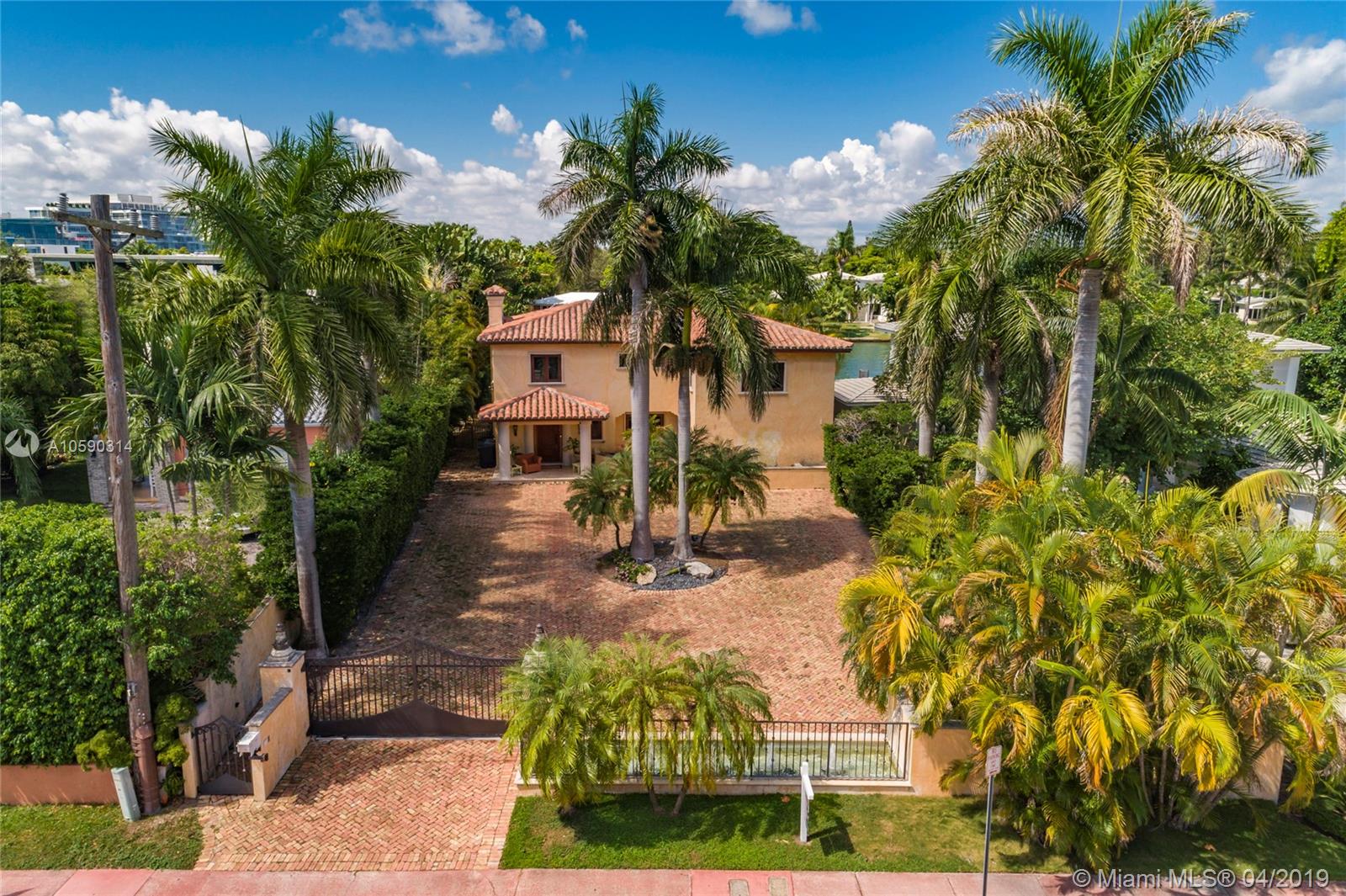 Best Waterfront Opportunity in Miami Beach. On historic Pinetree Drive, this gated waterfront home is situated on a 14,000+ square foot lot. Enter this Mediterranean Villa, and leave the bustle of Miami Beach behind. Inside, almost 3,800 sq ft open floor plan combines living, den, dining, and kitchen, which share the same water views. Two ensuite bedrooms downstairs (including maid's quarters), and 4 more ensuite bedrooms including master suite upstairs. Large backyard for entertaining features a covered patio, pool, and wooden deck overlooking the canal with a built-in pizza oven and a long, genuine Argentinean wood-fired parrilla — plus 70 ft of private waterfront facing the Lakeview neighborhood to the west. To the east, you'll see Miami Beach’s iconic Blue and Green Diamond buildings.